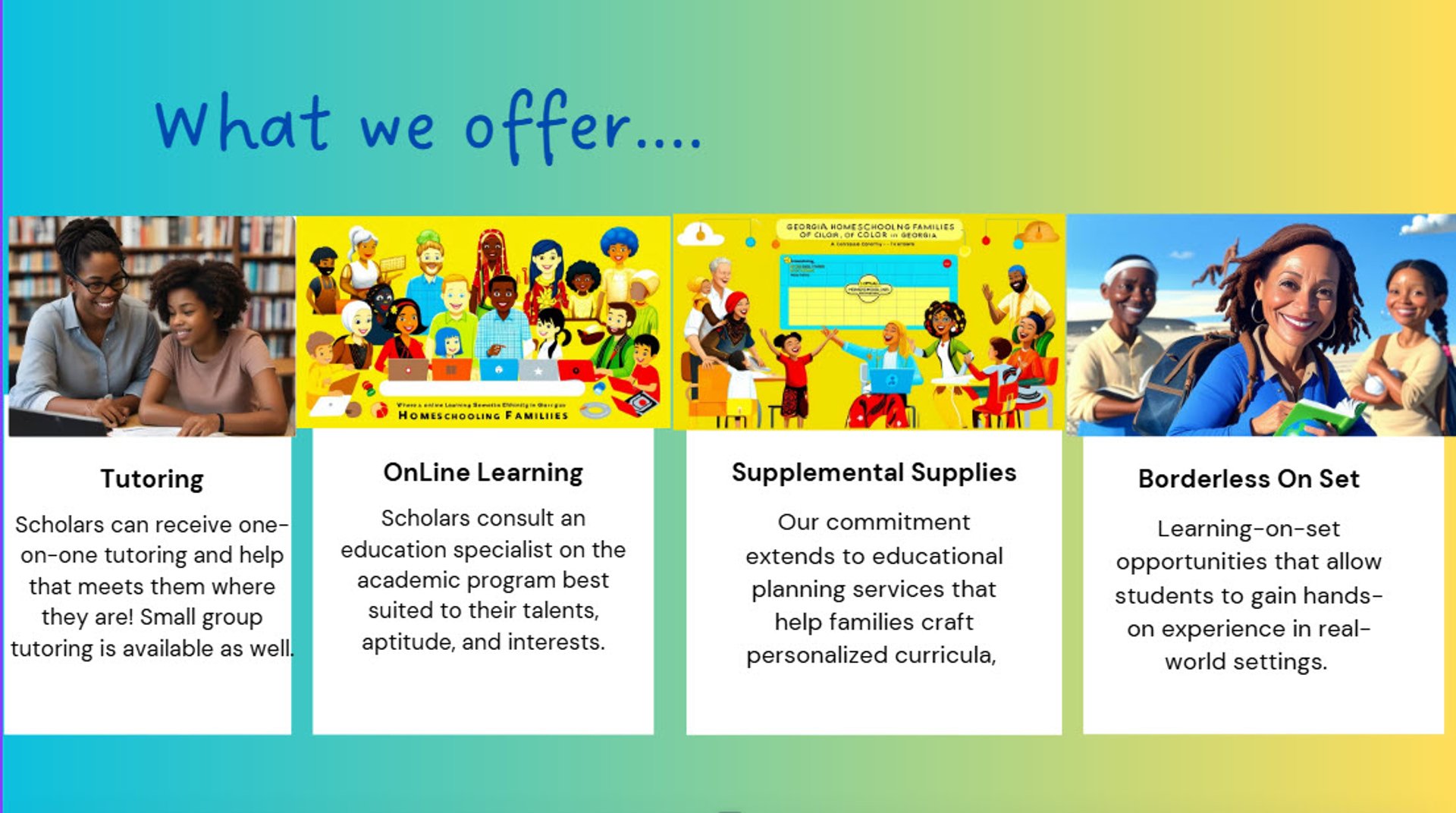 At Borderless Homeschooling Community, we provide tailored curriculum, coaching, and tutoring to support your family's unique homeschooling adventure.